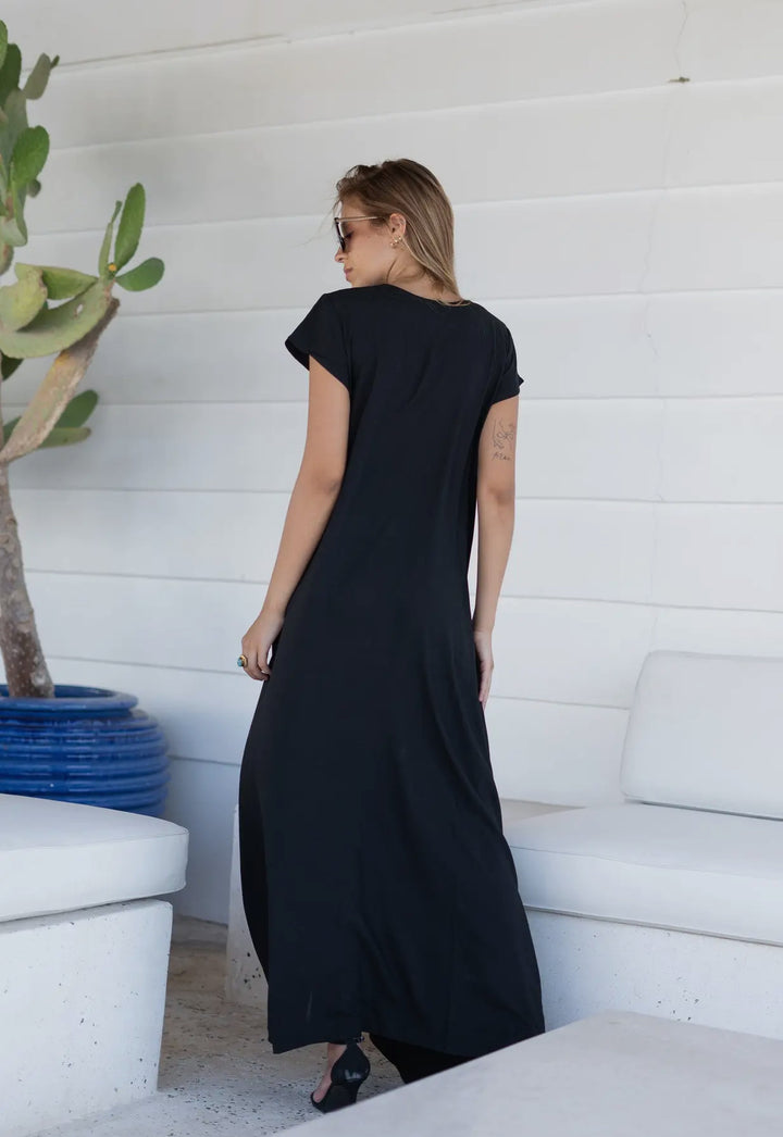 Black Embroidered Kaftan Maxi Dress