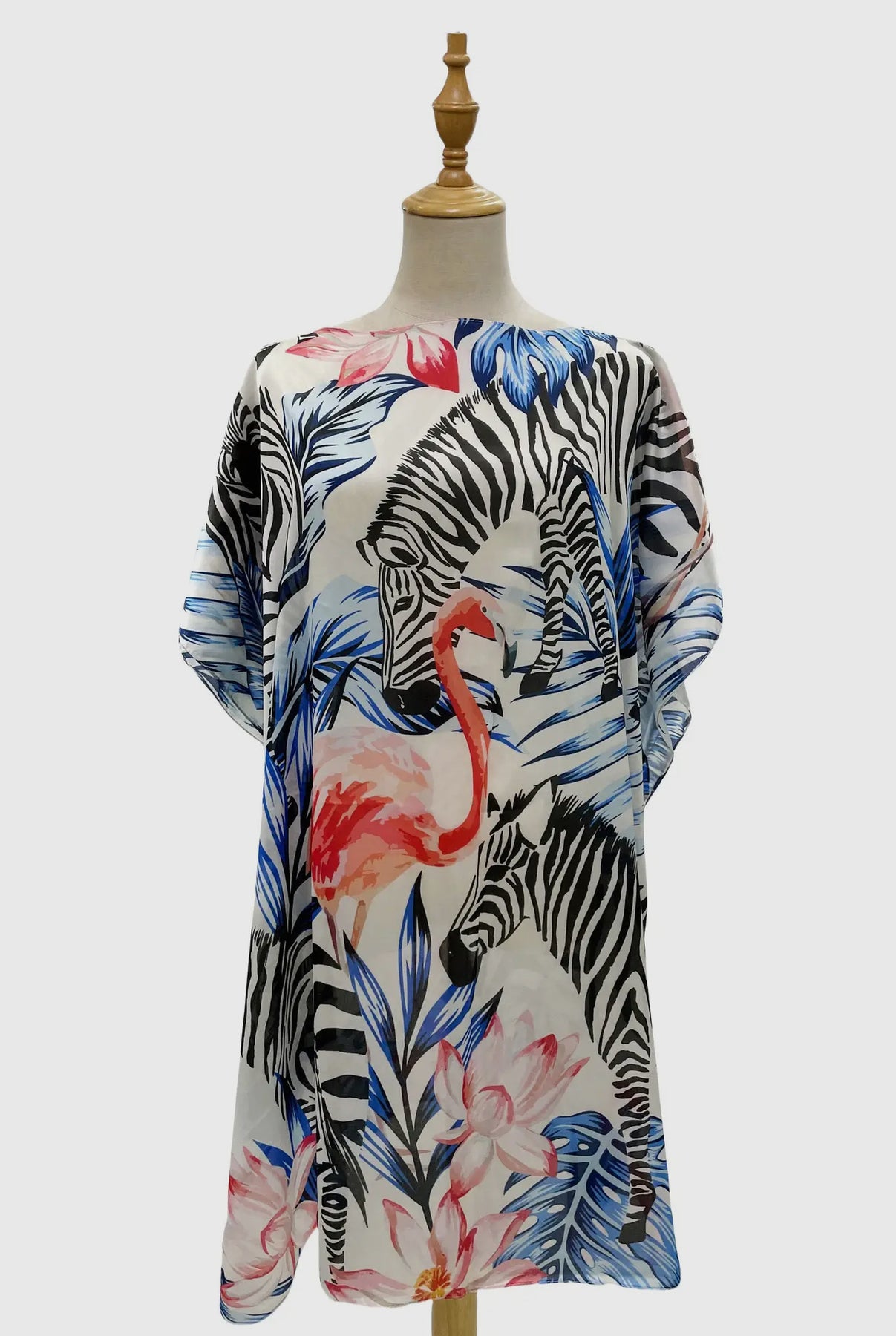 This jungle patterned cover up features a luxurious blend of silk and viscose, making it an elegant and beautiful choice for that special vacation, a day of shopping or brunch with friends. High quality and vibrantly colored. One size fits all. Imported.