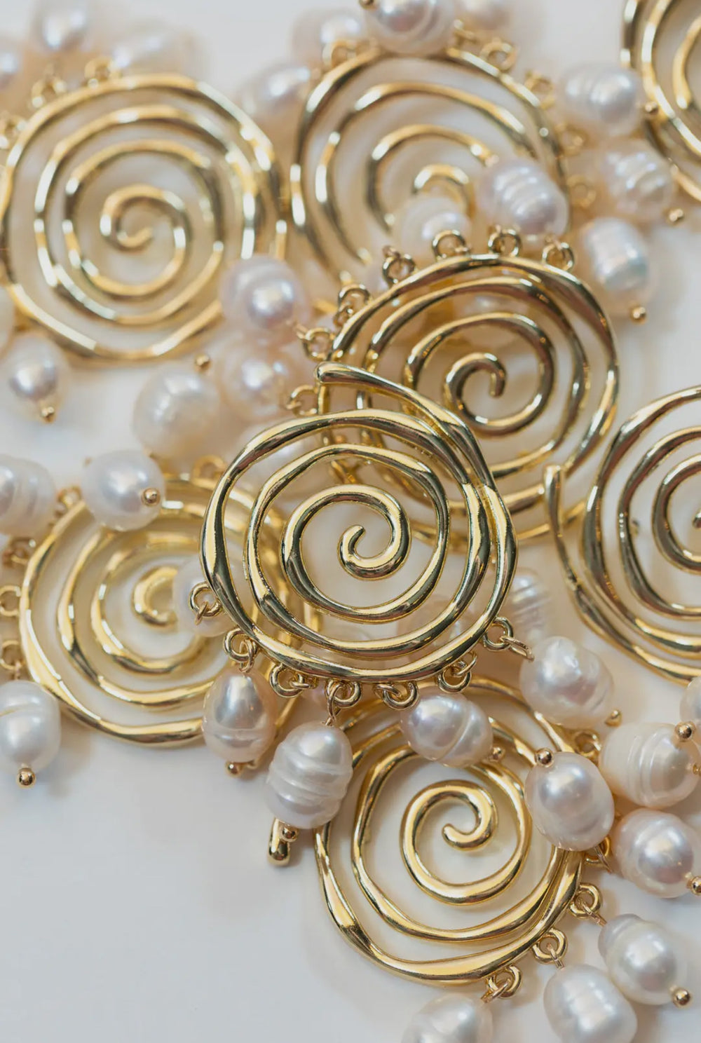 Golden Swirl Earrings with Genuine Pearl