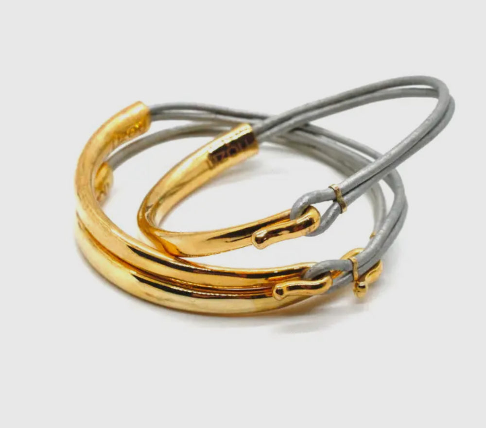 Leather and 18K Gold Plate Bangle Bracelet-Light gray