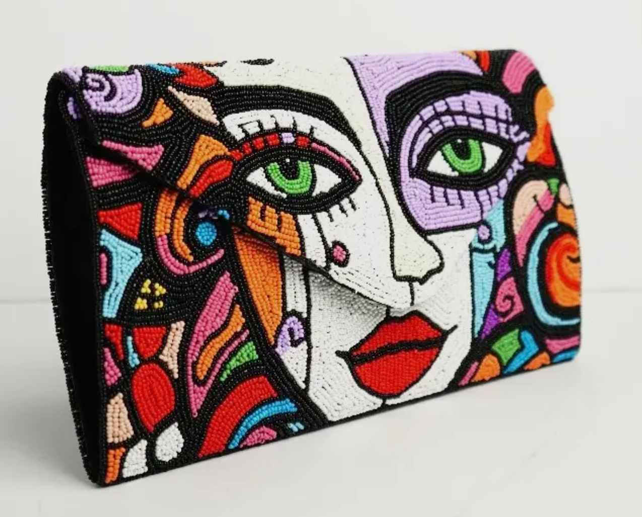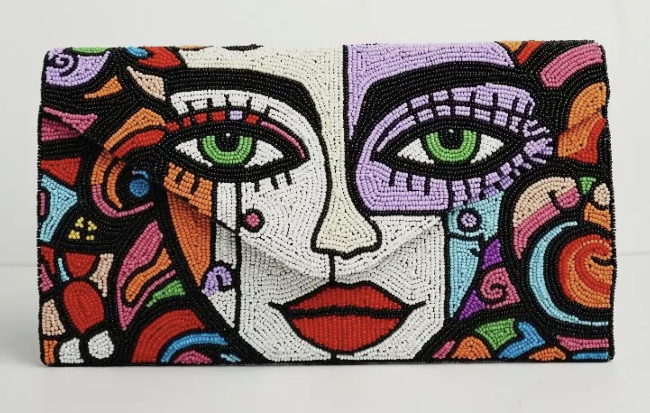 Hand Beaded Art Clutch-Abstract Face