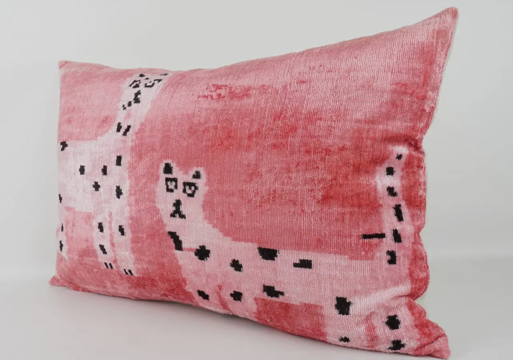 100% silk velvet Ikat Limited Edition Cat Pillow 16"x24"-petal