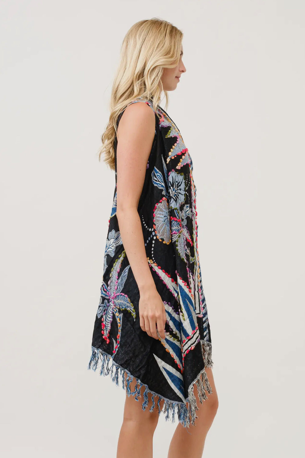 This captivating piece with its zig zag and floral motifs is the quintessential statement piece you need to elevate and complete your look. Laying it over jeans, a skirt, shorts or slacks, this effortlessly adds a touch of individuality to any outfit. Woven with thick stitch embroidery, this vest is great for those who appreciate beauty and uniqueness. 100% rayon. Hand wash or dry clean only.