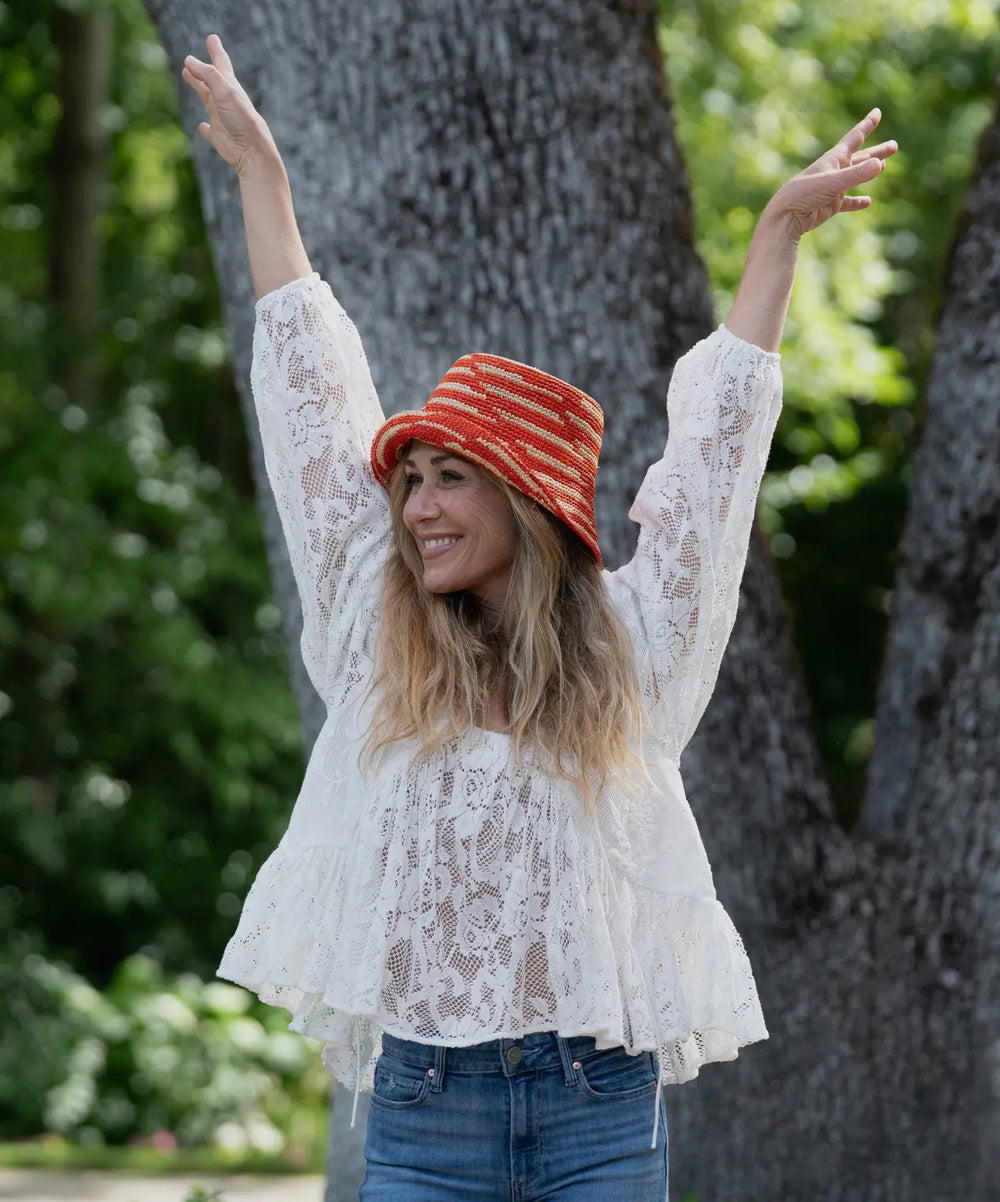 Enhance your style and sun protection with our handcrafted crochet bucket straw hat! Crafted from raffia palm fiber, it's tight weave delivers excellent SPF coverage with a lightweight feel. Boasting a playful zebra stripe design and a trendy bucket shape, this hat is the perfect addition to any ensemble. Brim is approx. 3". Made in Madagascar.