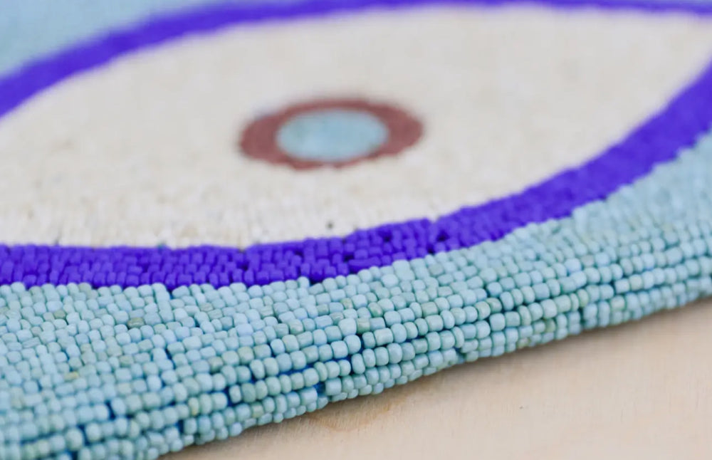 This gorgeous statement piece will surely get noticed. This hand beaded, with intricate detailing, evil eye clutch purse was ethically made in Bali, Indonesia by a skilled artisan. It features  a secure zipper closure, and a convenient wrist strap for easy carrying. 5"x9". Strap is 5".