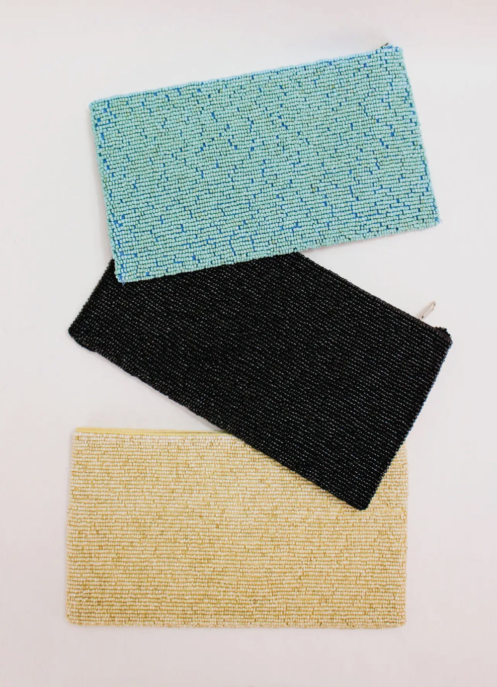 This gorgeous statement piece will surely get noticed. This hand beaded, with intricate detailing, evil eye clutch purse was ethically made in Bali, Indonesia by a skilled artisan. It features a secure zipper closure, and a convenient wrist strap for easy carrying. 5"x9". Strap is 5".