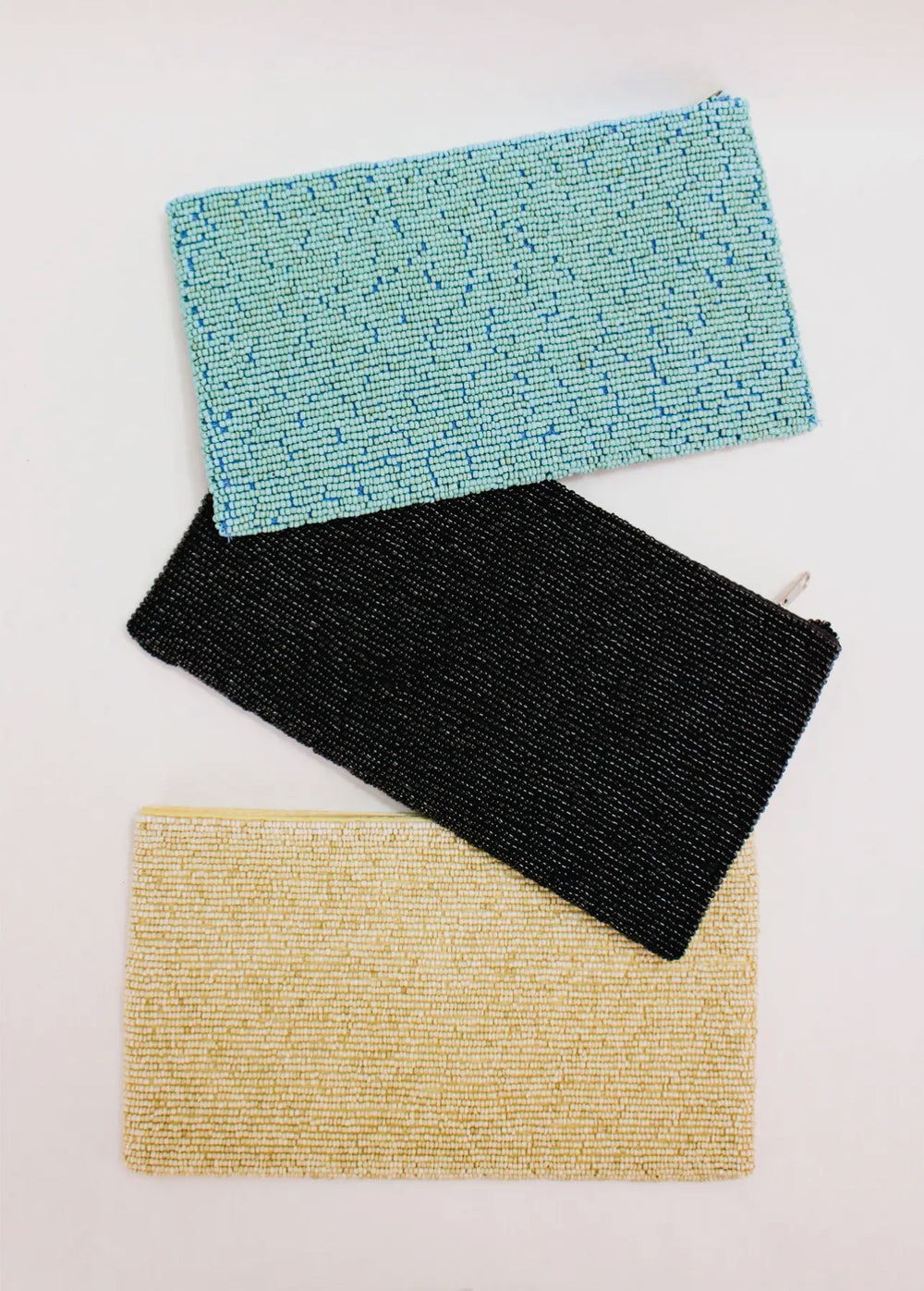 This gorgeous statement piece will surely get noticed. This hand beaded, with intricate detailing, evil eye clutch purse was ethically made in Bali, Indonesia by a skilled artisan. It features a secure zipper closure, and a convenient wrist strap for easy carrying. 5"x9". Strap is 5".
