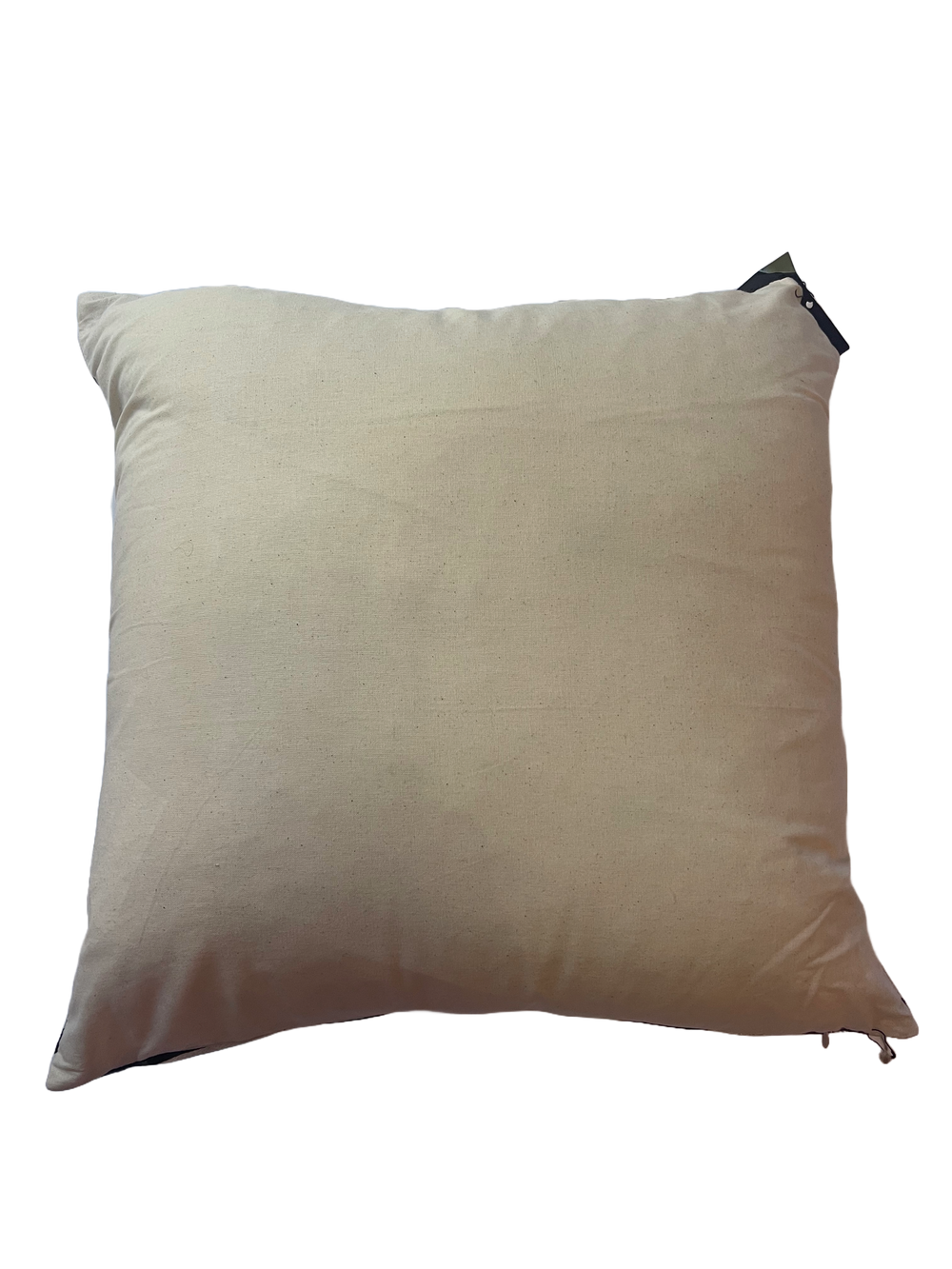 This truly gorgeous work of art is made by skilled artisans in the mountains of Turkey. The evil eye motif throw pillow will add interest to any decor. It's all hand embroidered of silk with a cotton background. The backside is a cream colored cotton. Comes complete with a hidden zipper and insert. Dimensions: 20" x 20". Spot clean.