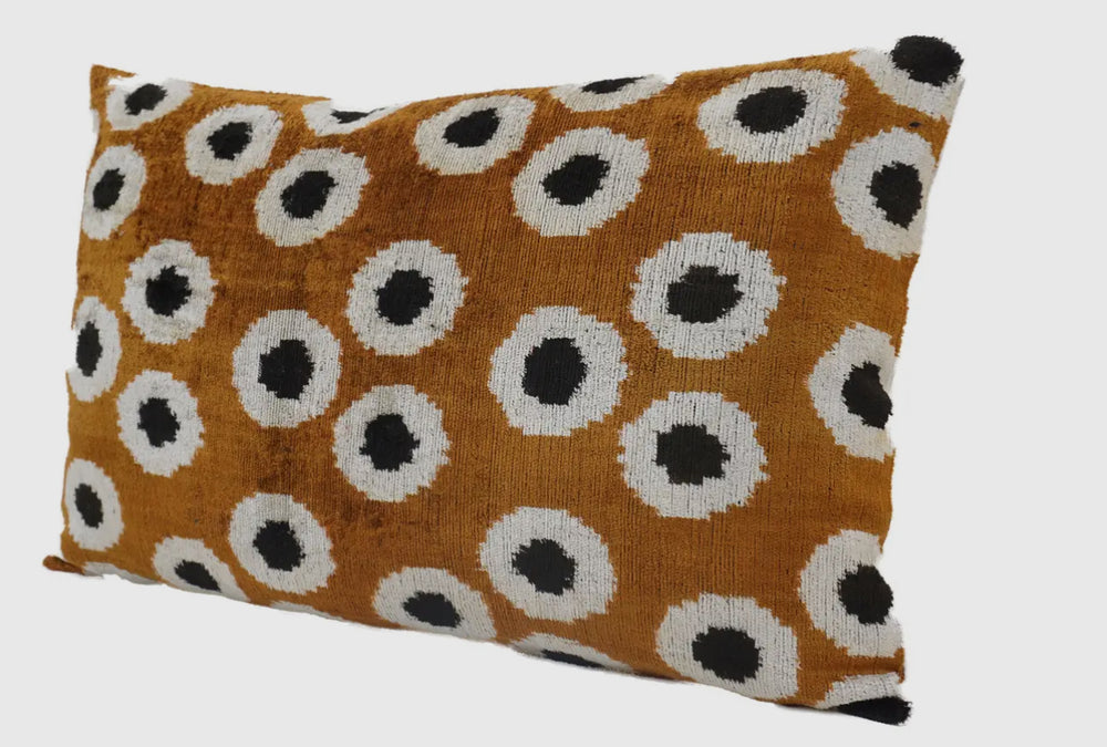 Graphic and Modern 100% silk velvet Ikat lumbar throw pillow-16"x24"