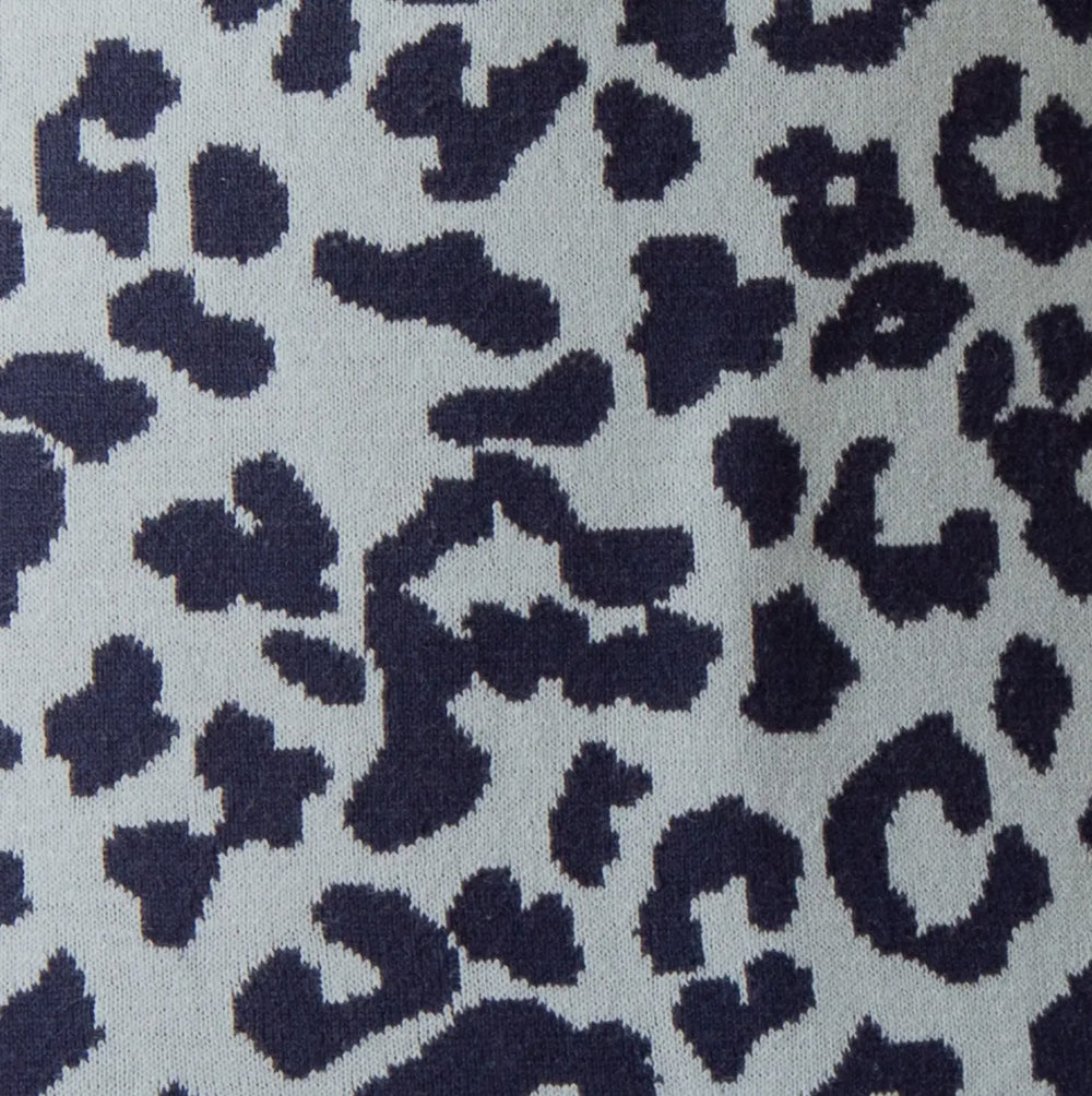 Leopard patterned 100% cotton knit throw pillow: 20"x 20" Navy blue/mist blue