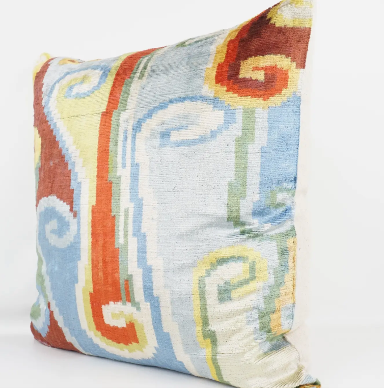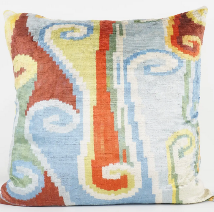 Modern 100% silk velvet Ikat throw pillow-24"x24"