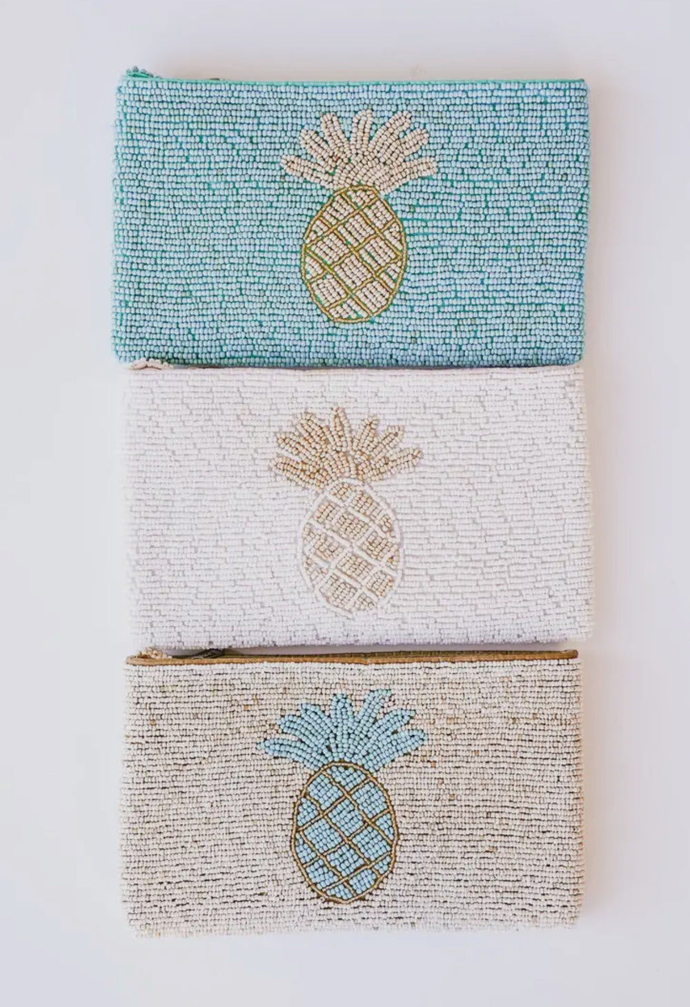This fun Pineapple beaded clutch is perfect for those tropical days whether at home or on holiday in some tropical locale. Ethically made by skilled artisans in Bali, Indonesia, this cute little clutch will add interest to any outfit. Features a zipper closure and wrist strap. 5"x8", Strap is 5".